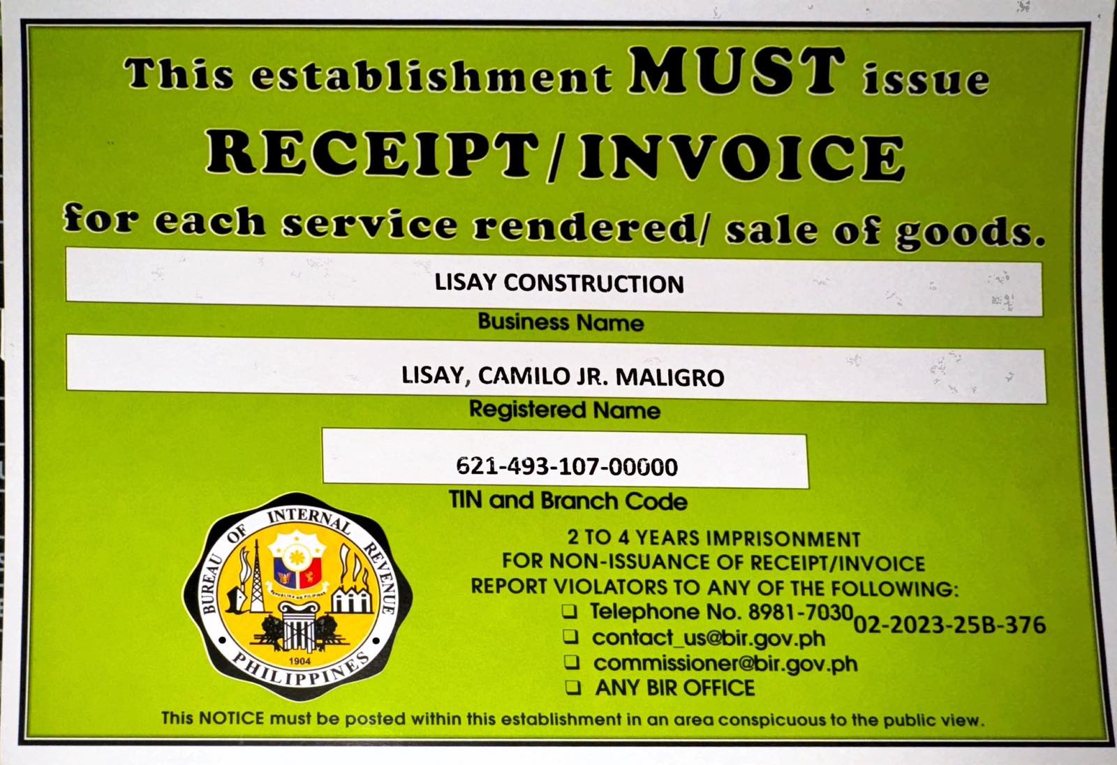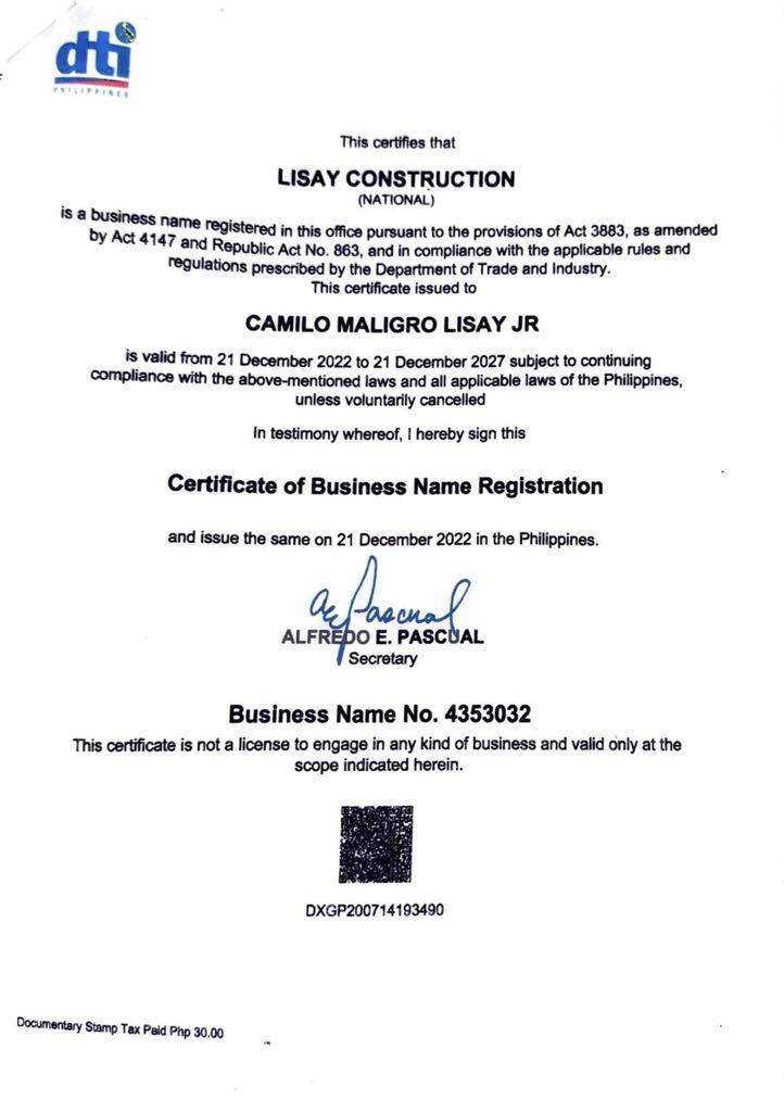 Lisay Construction was founded in 2021, transitioning to Sole Proprietorship from Partnership (Licast Construction founded in 2019).